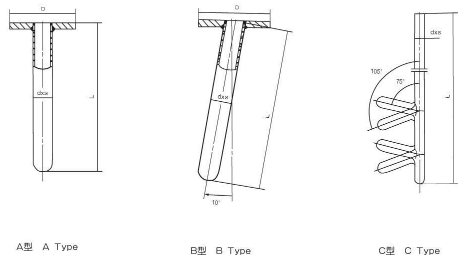 注:C型温度计套管用于叶轮式(浆式)搅拌器