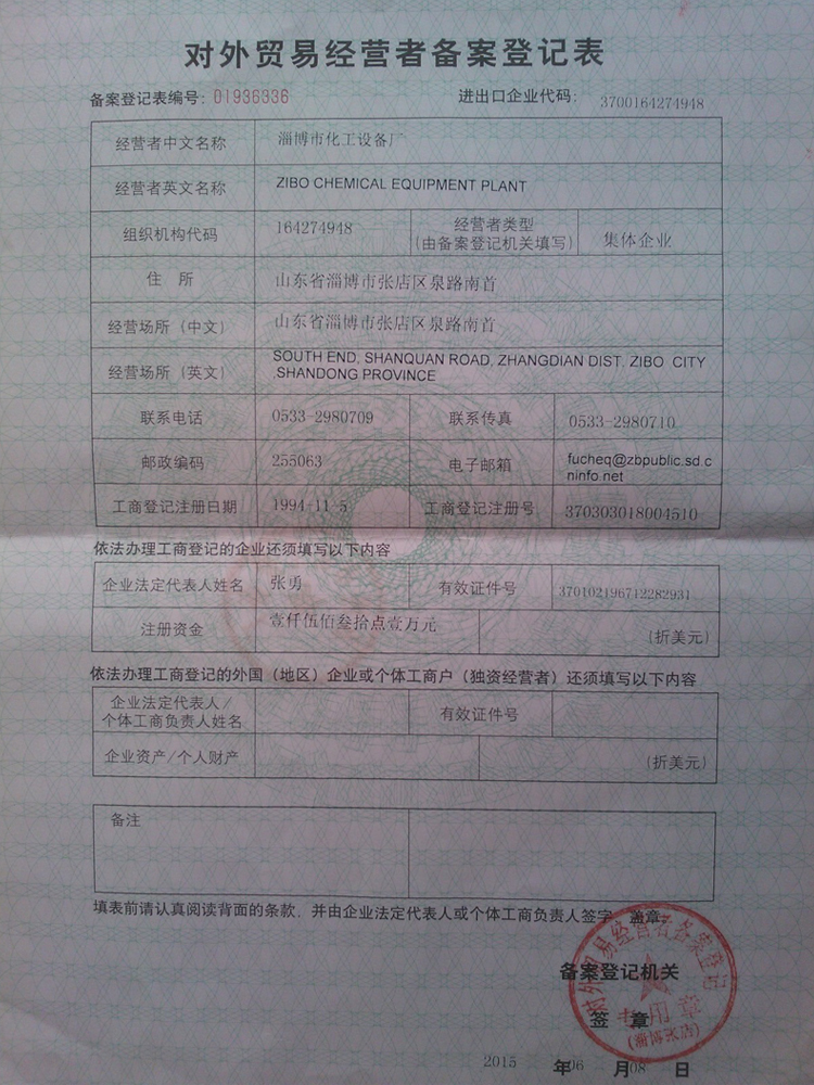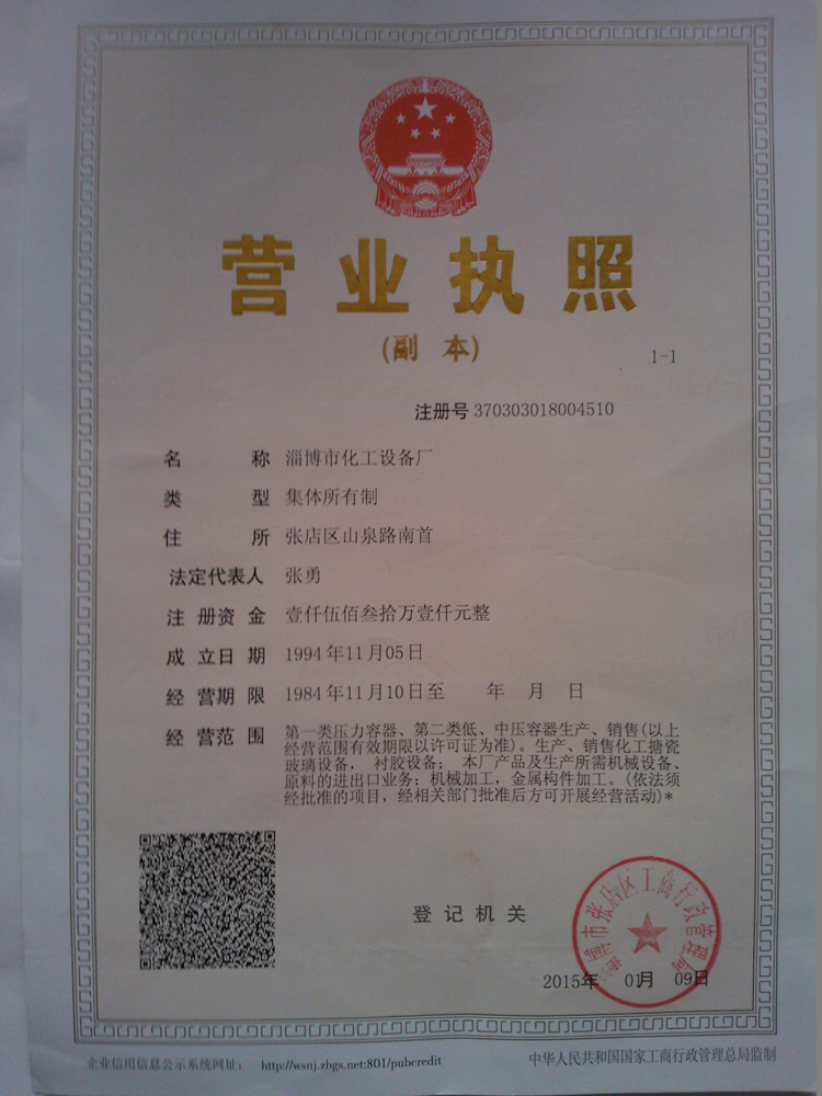 营业执照-淄博市化工设备厂