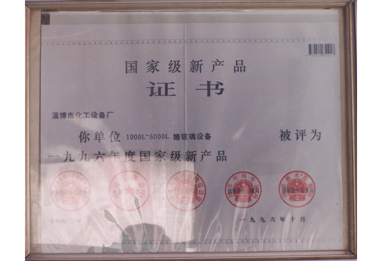 国家级新产品证书